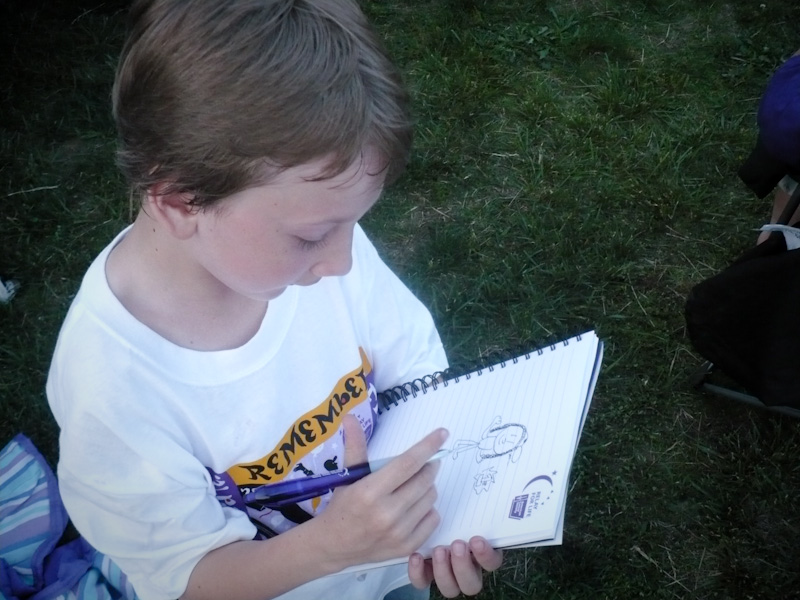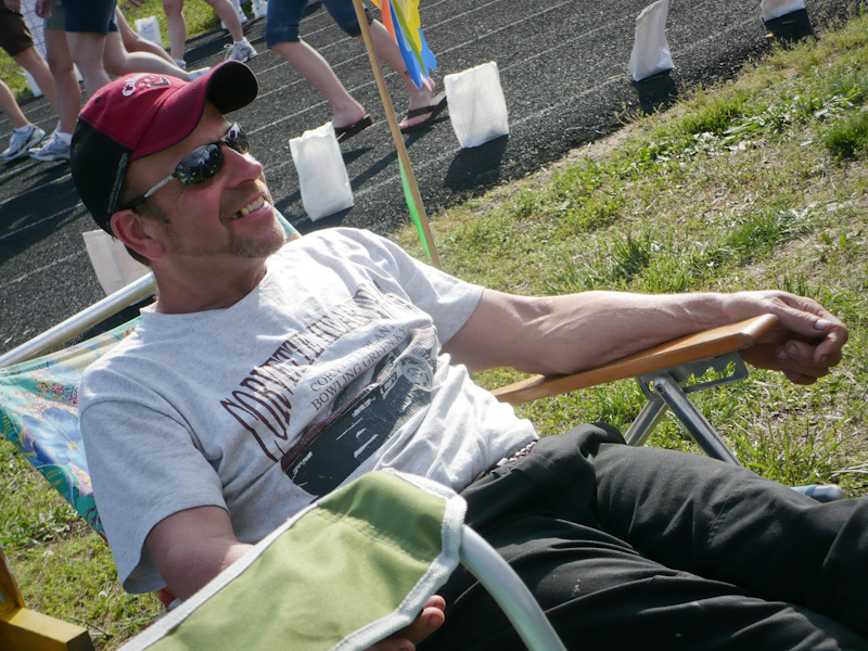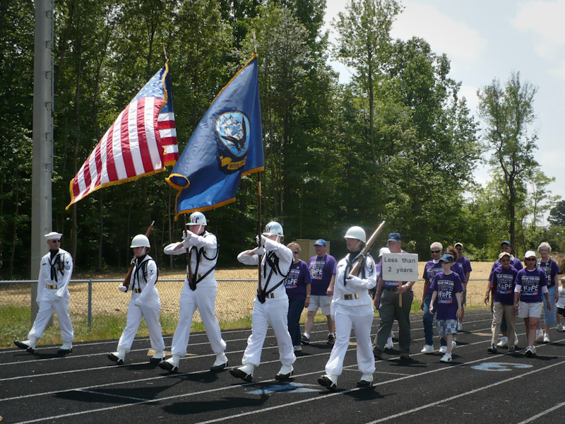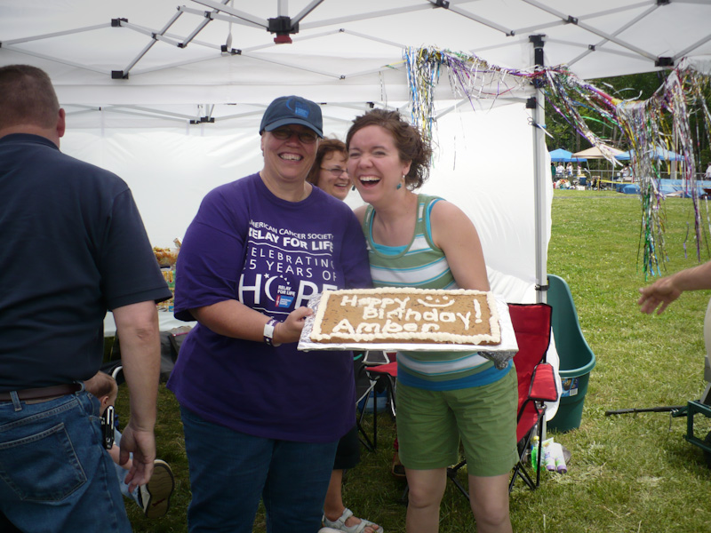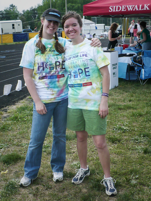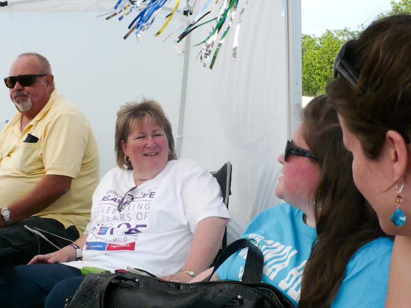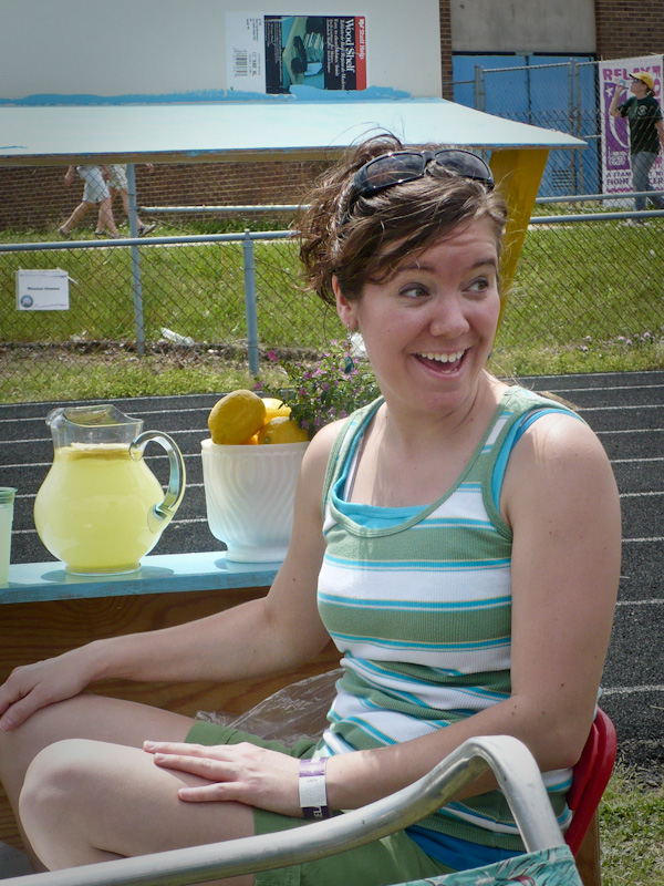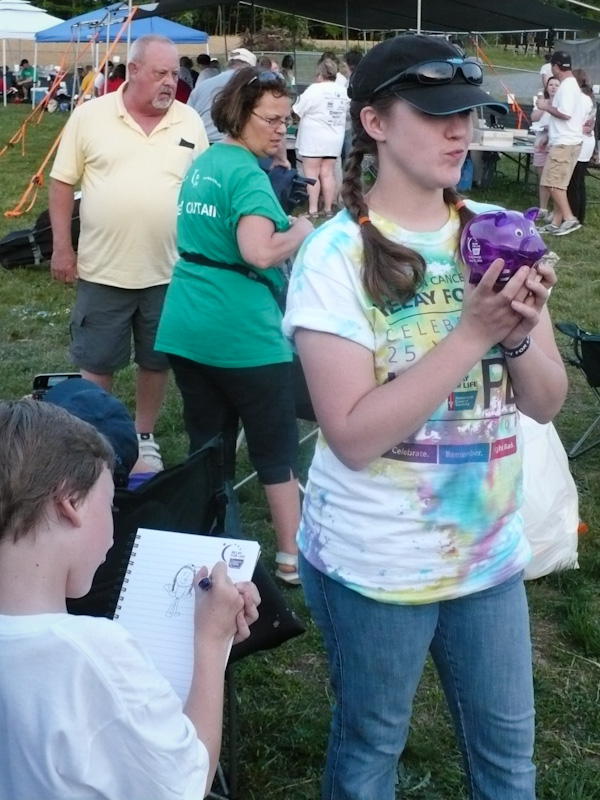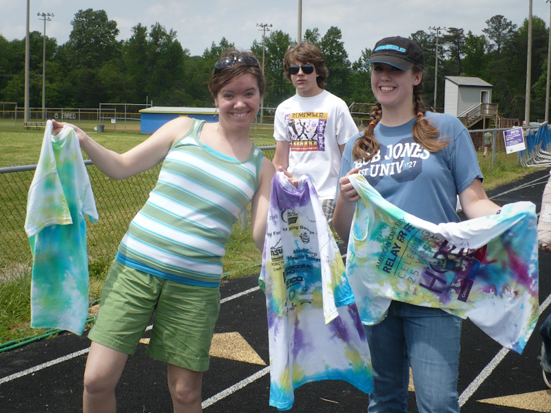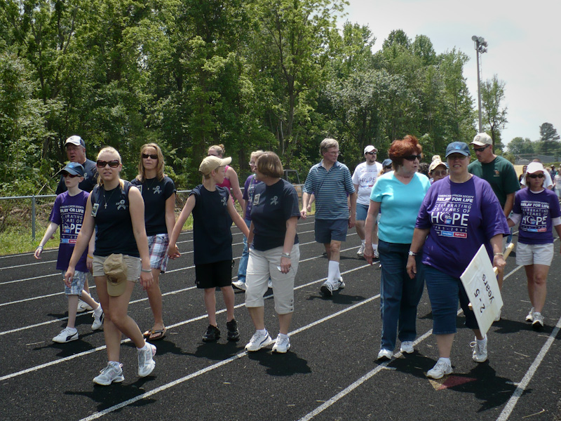 This year’s Relay for Life, hosted by the American Cancer Society, was held at the old King George High School today. About 600 people from the county showed up and there were about 40 different teams set up around the track with various fundraisers for the fight against cancer. Whether they were church groups or families selling anything from BBQ sandwiches to tie-dye t-shirts, the enthusiasm for what they were fighting for was evident in the dedication of the team members and participants that took turns walking around the track. Team Hanover Baptist Church, with Cheryl Carter as Team Captain, had 17 members come and participate over the day. We ran a lemonade stand for the thirsty walkers and to raise money for the fight against cancer.