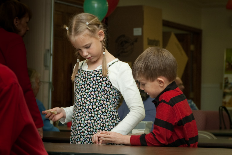 We packed our shoeboxes for Operation Christmas Child following the morning service.