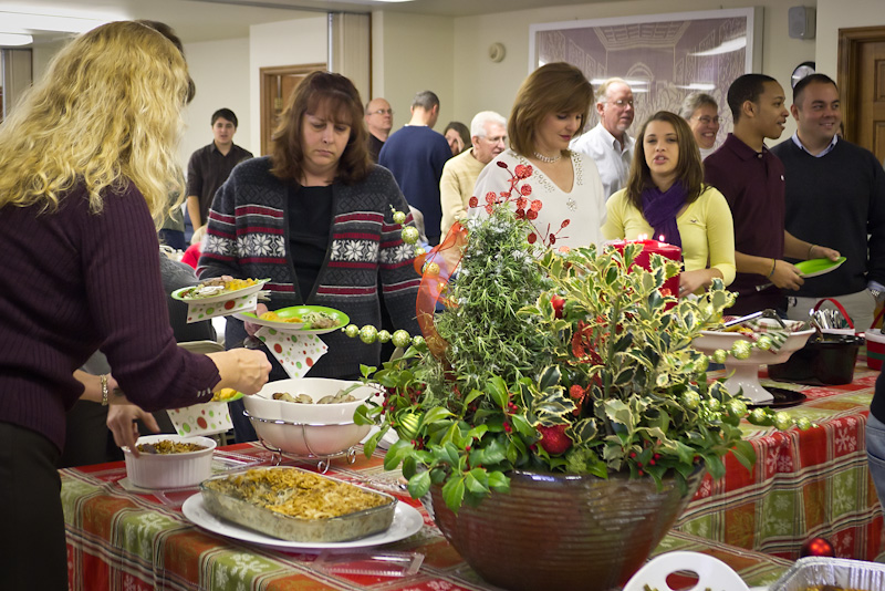 Once the appetizer supply was sufficiently diminished and we were fully in the Chrismas spirit, we caravanned a few miles to the Burrell’s warm and cozy home for the main course. We enjoyed a delicious meal including some wonderful new dishes as we clustered into several groups to reveal our plans for Christmas, share stories of recent blessings, and discuss the state of our country.