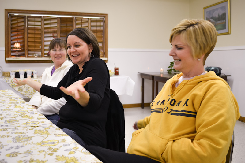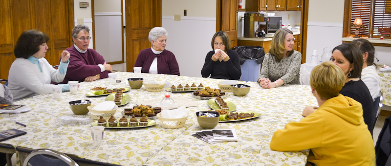Tonight the ladies gathered for “Coffee, Chocolate and Chitchat.” It was a great time to relax, nurse a cup o’ joe, and just get to know each other. And chocolate—need we say more?!