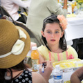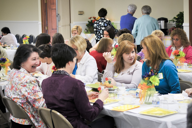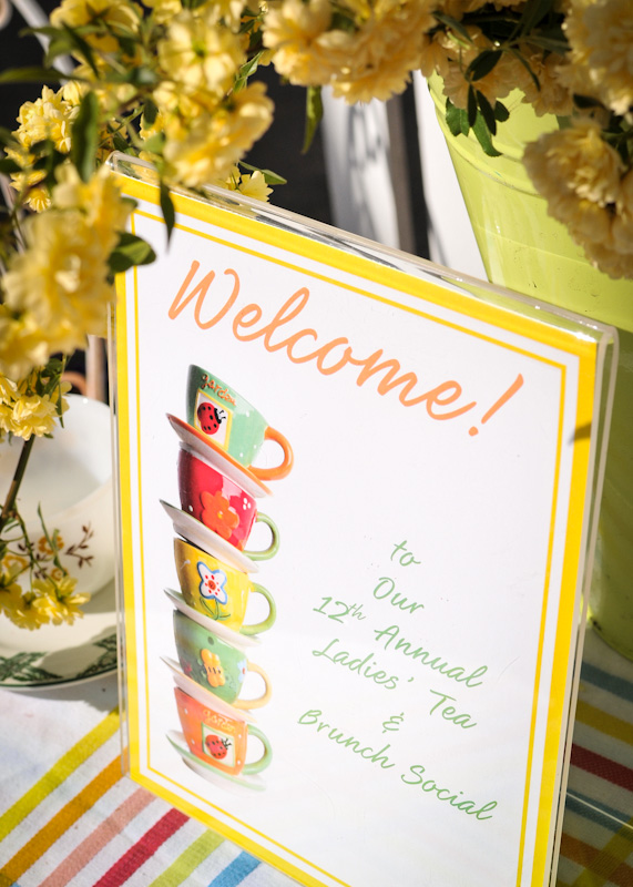 When our guests got to the door, they were greeted by our lovely younger ladies who were so kind and eager to serve. Inside, Cheryl Carter and the creative team composed a gorgeous setting, garlanding the fellowship hall with watering cans and Wellies, brimming with flora in bright yellows, greens, purples and blues. The room soon filled with ladies of all ages, all fresh and lovely, and truly the blooms framed in the garden scene.