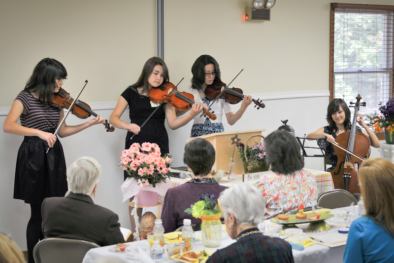 Mrs. Betsy had everybody giggling as she described the challenges in a fictional parenting-themed Survivor episode. Carleigh Watts and the Pizana girls then played Pachelbel’s Canon in D as the musical interlude before the message.
